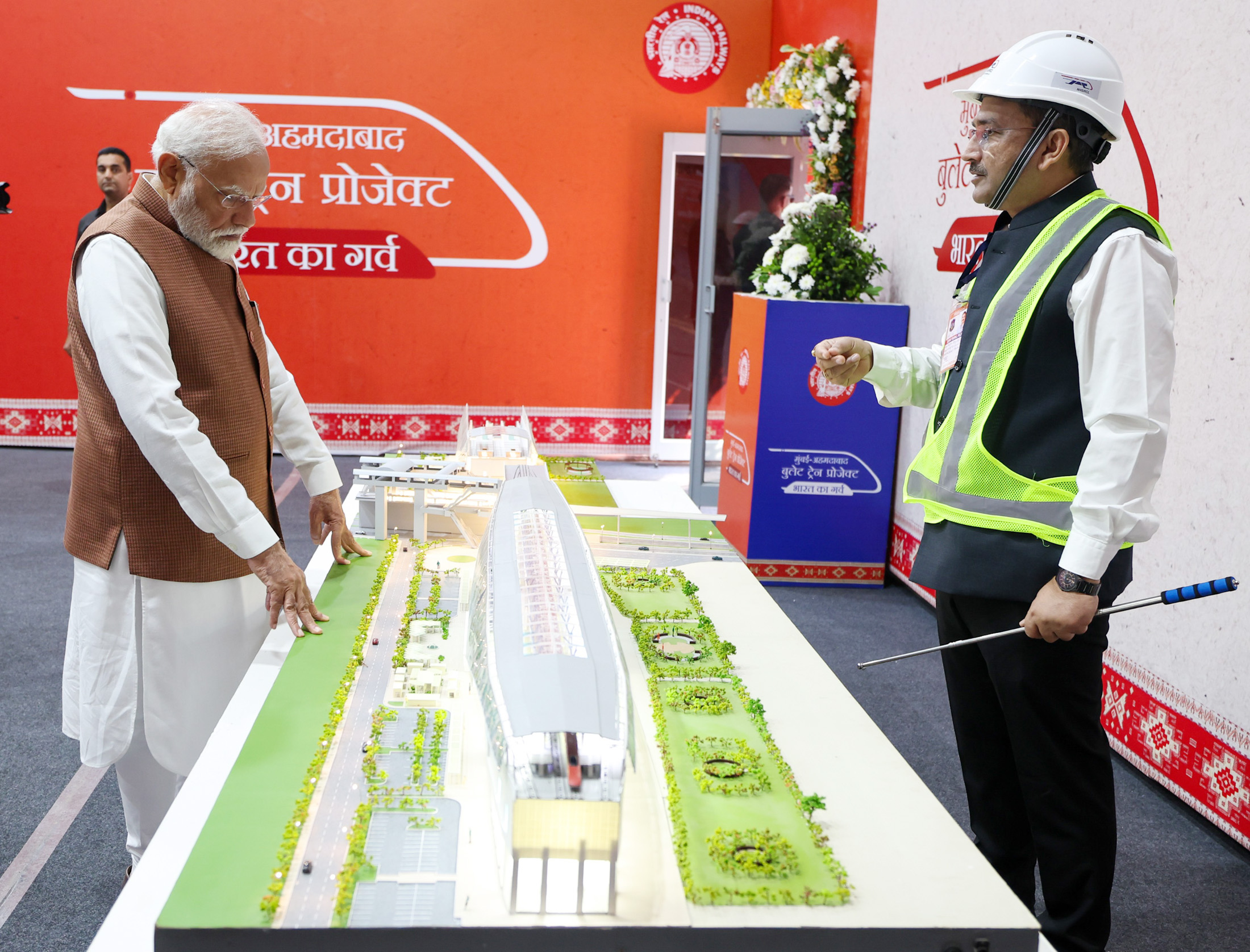 প্রধানমন্ত্রী শ্রী নরেন্দ্র মোদী গতকাল গুজরাতের সুরাতে নির্মীয়মান বুলেট ট্রেন স্টেশন পরিদর্শন করেন এবং মুম্বই-আমেদাবাদ হাই-স্পিড রেল করিডরের কাজের অগ্রগতি খতিয়ে দেখেন তিনি। ভারতের প্রথম বুলেট ট্রেন প্রকল্পের সঙ্গে যুক্ত কর্মীদের সঙ্গেও কথা বলেন শ্রী মোদী এবং কাজের অগ্রগতি সম্পর্কে তাঁদের কাছে খোঁজখবর নেন। কর্মীরা তাঁকে আশ্বস্ত করে বলেন, কোনও রকম সমস্যা ছাড়াই প্রকল্পের কাজ মসৃণভাবে এগোচ্ছে।