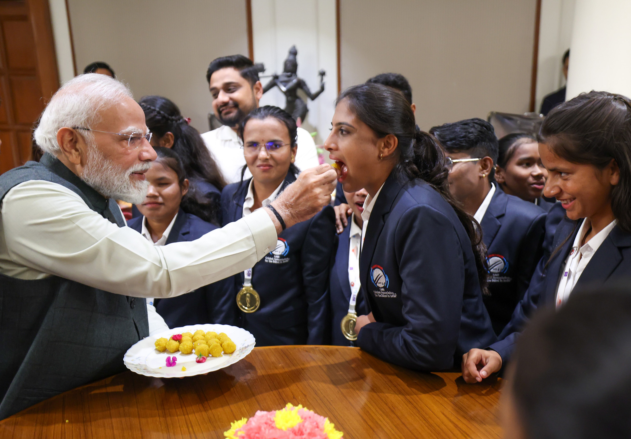 PM meets the victorious Women’s Blind Cricket Team, which won the T20 World Cup, in ...