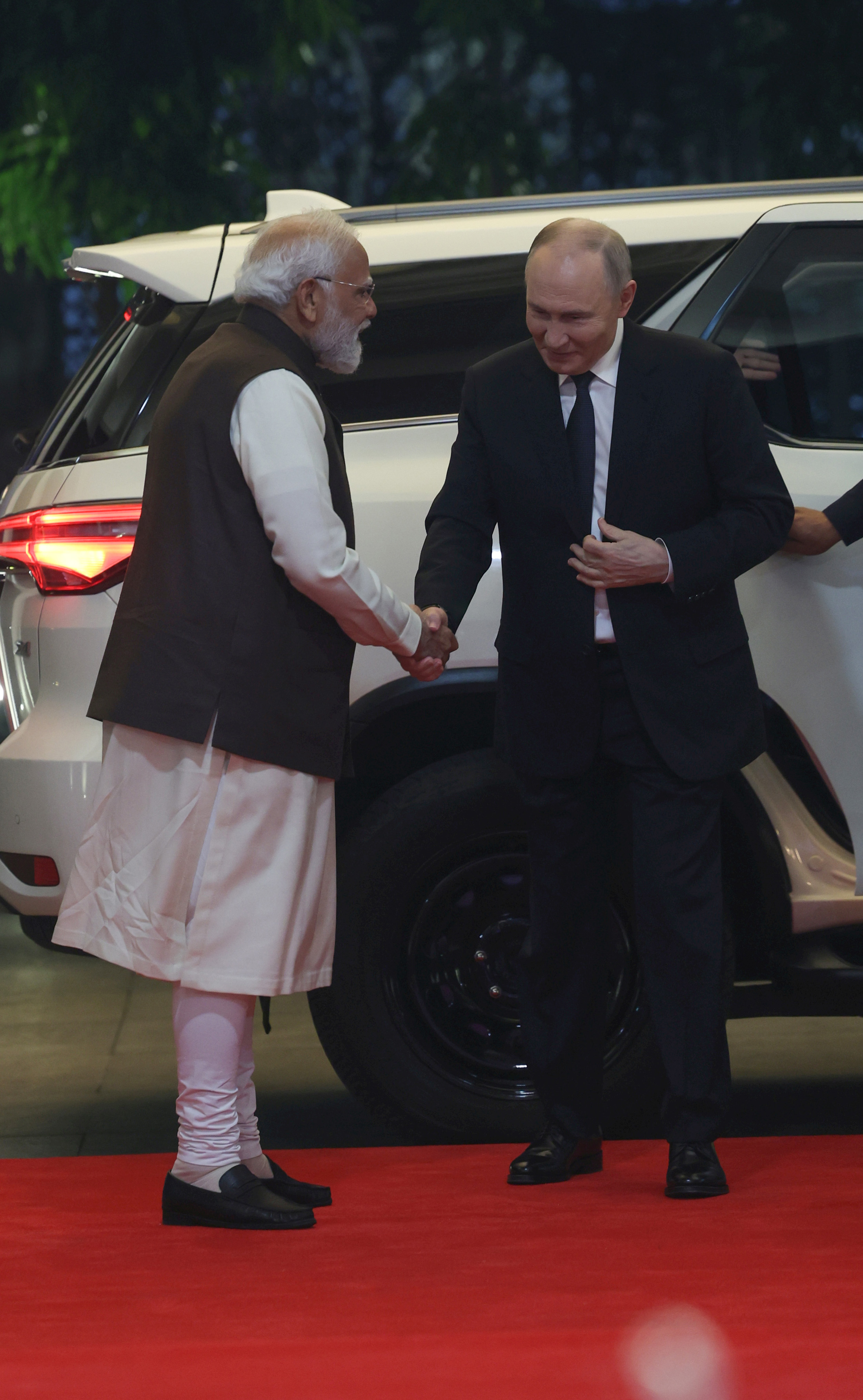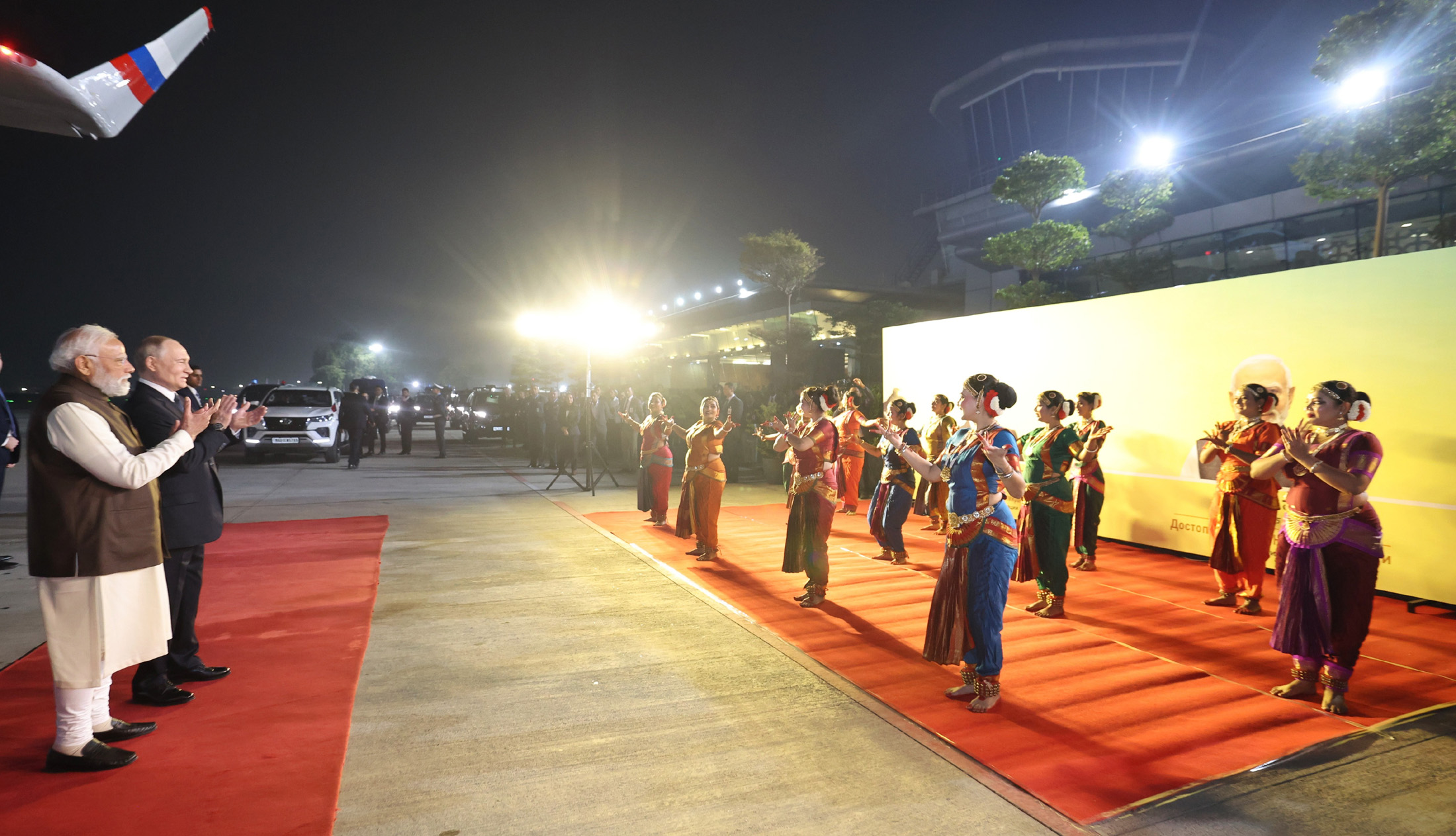 PM receives President of Russian Federation, Mr. Vladimir Putin at the airport, in New Delhi ...