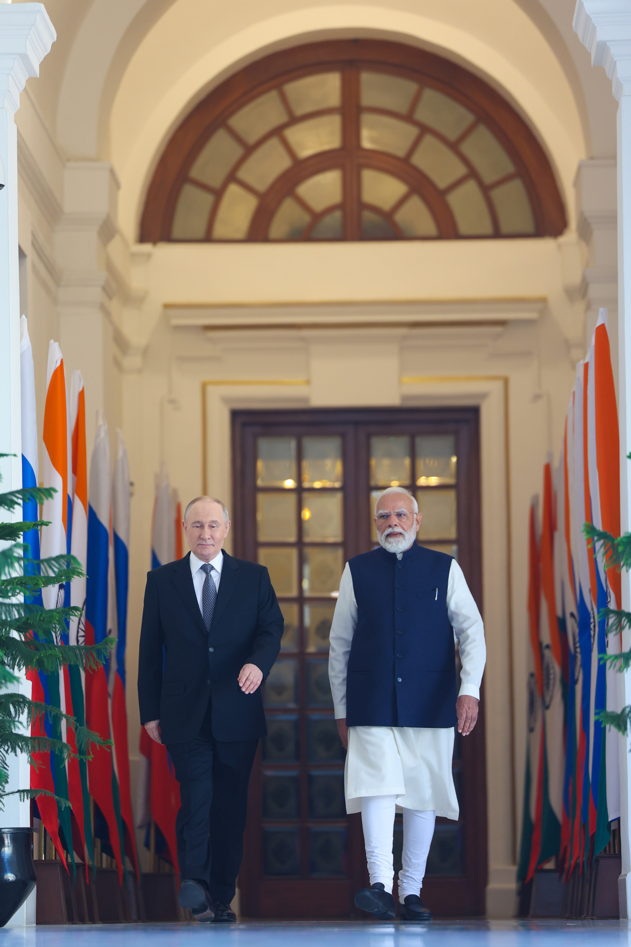 PM meets Russian President, Mr. Vladimir Putin at Hyderabad House, in New Delhi (December 05, ...