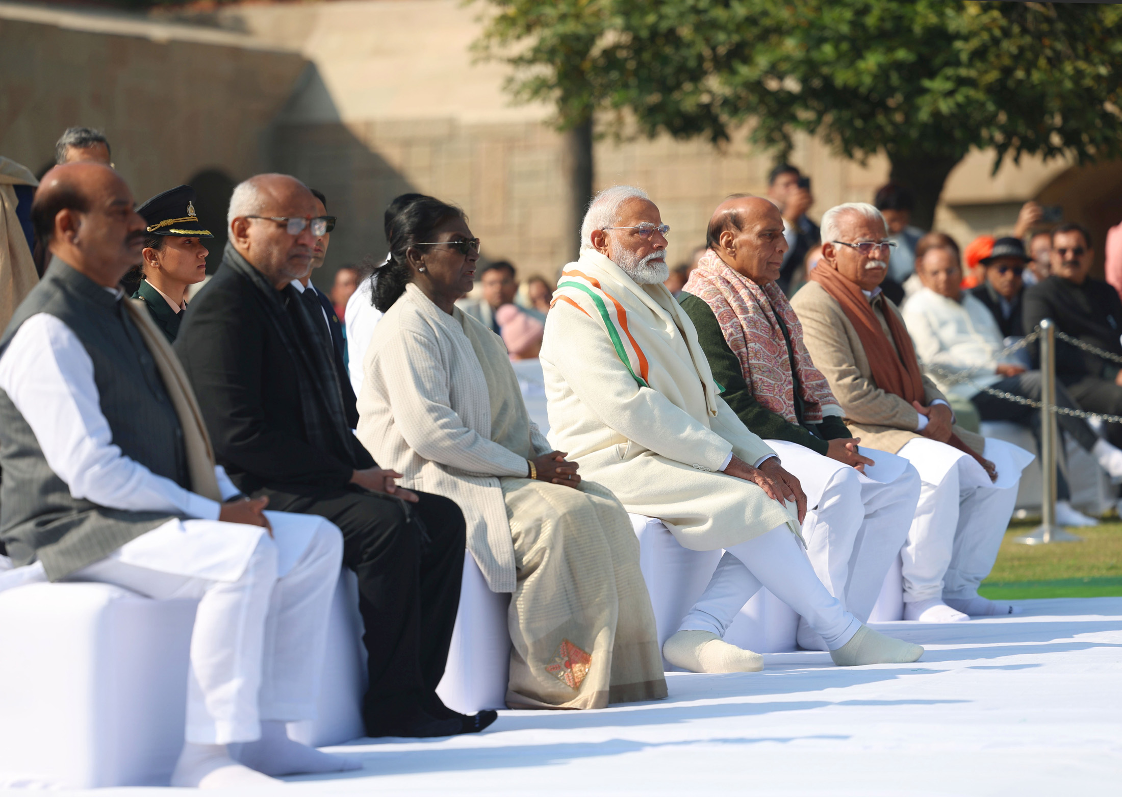 “Paid tributes to Mahatma Gandhi at Rajghat. His timeless ideals continue to guide our nation’s journey. We reaffirm our commitment to his principles and to building an India rooted in justice, harmony and service to humanity.”