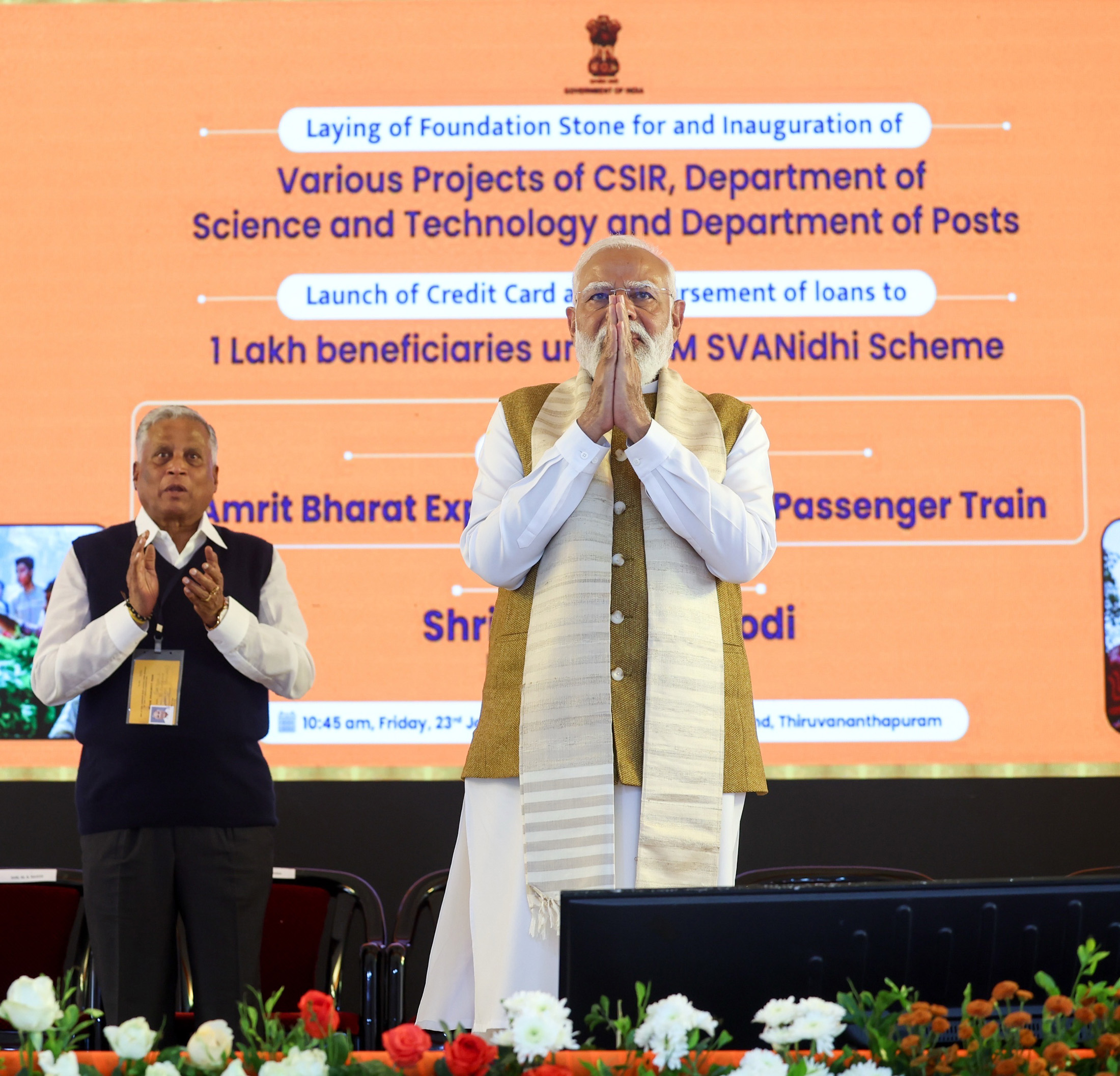 Today, the efforts of the Central Government for the development of Kerala have received new momentum. From today, rail connectivity in Kerala is strengthened, an initiative has been taken to make Thiruvananthapuram a big start-up hub of the country. Today, a big beginning related to welfare of the poor in the whole country is also happening from Kerala. Today, PM SVANidhi Credit Card has been launched. From this, colleagues working as street vendors, on carts, and on footpaths across the country will benefit. I give many many congratulations to the people of Kerala, to the countrymen, for development, for employment generation, for all these schemes.