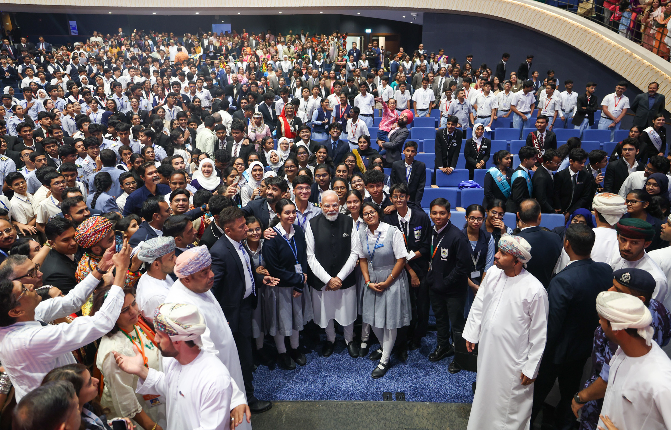മസ്കറ്റിൽ, ഇന്ത്യൻ വംശജരുടെ ഒരു വലിയ സമ്മേളനത്തെ പ്രധാനമന്ത്രി ഇന്ന് അഭിസംബോധന ചെയ്തു. വിവിധ ഇന്ത്യൻ സ്കൂളുകളിൽ നിന്നുള്ള 700-ലധികം വിദ്യാർത്ഥികൾ സദസ്സിലുണ്ടായിരുന്നു. രാജ്യത്ത് സ്ഥാപിതമായതിന്റെ 50ാം വാർഷികം ആഘോഷിക്കുന്ന ഈ വർഷം ഒമാനിലെ ഇന്ത്യൻ സ്കൂളുകൾക്ക് പ്രത്യേക പ്രാധാന്യമുള്ളതാണ്.