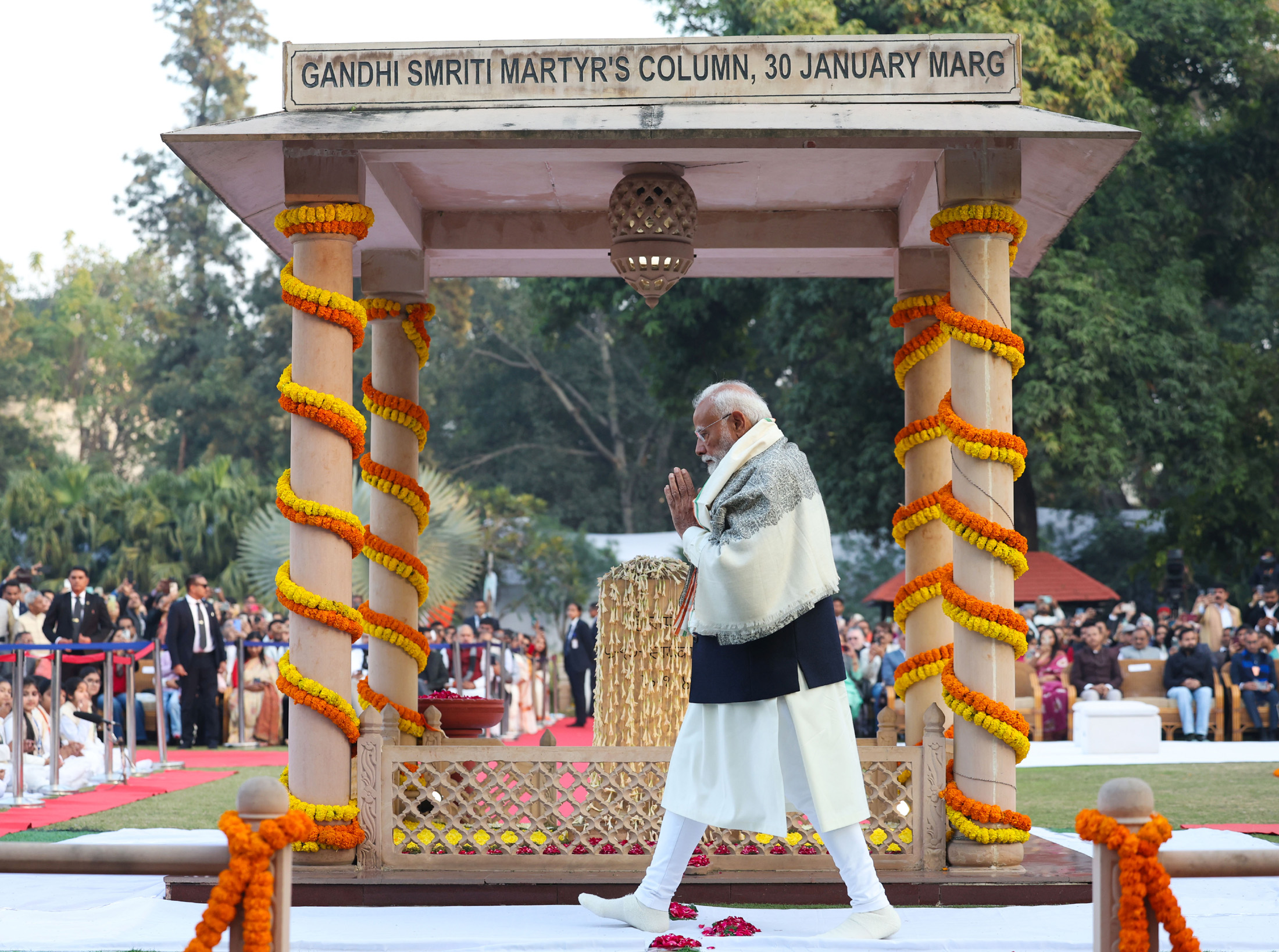 ਪ੍ਰਧਾਨ ਮੰਤਰੀ ਨੇ ਨਵੀਂ ਦਿੱਲੀ ਵਿੱਚ ਗਾਂਧੀ ਸਮ੍ਰਿਤੀ ਵਿਖੇ ਮਹਾਤਮਾ ਗਾਂਧੀ ਦੀ ਯਾਦ ਵਿੱਚ ਪ੍ਰਾਰਥਨਾ ...