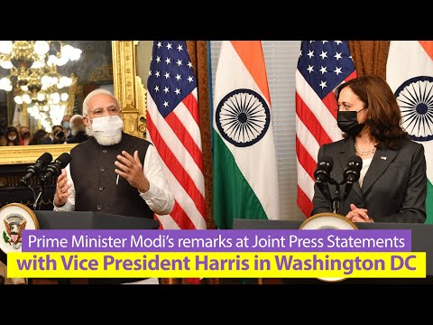 అమెరికాలోని వాషింగ్టన్ డిసి లో ఉపాధ్యక్షురాలు కమలా హారిస్తో సంయుక్త పత్రికా ప్రకటనలో ప్రధాని ...